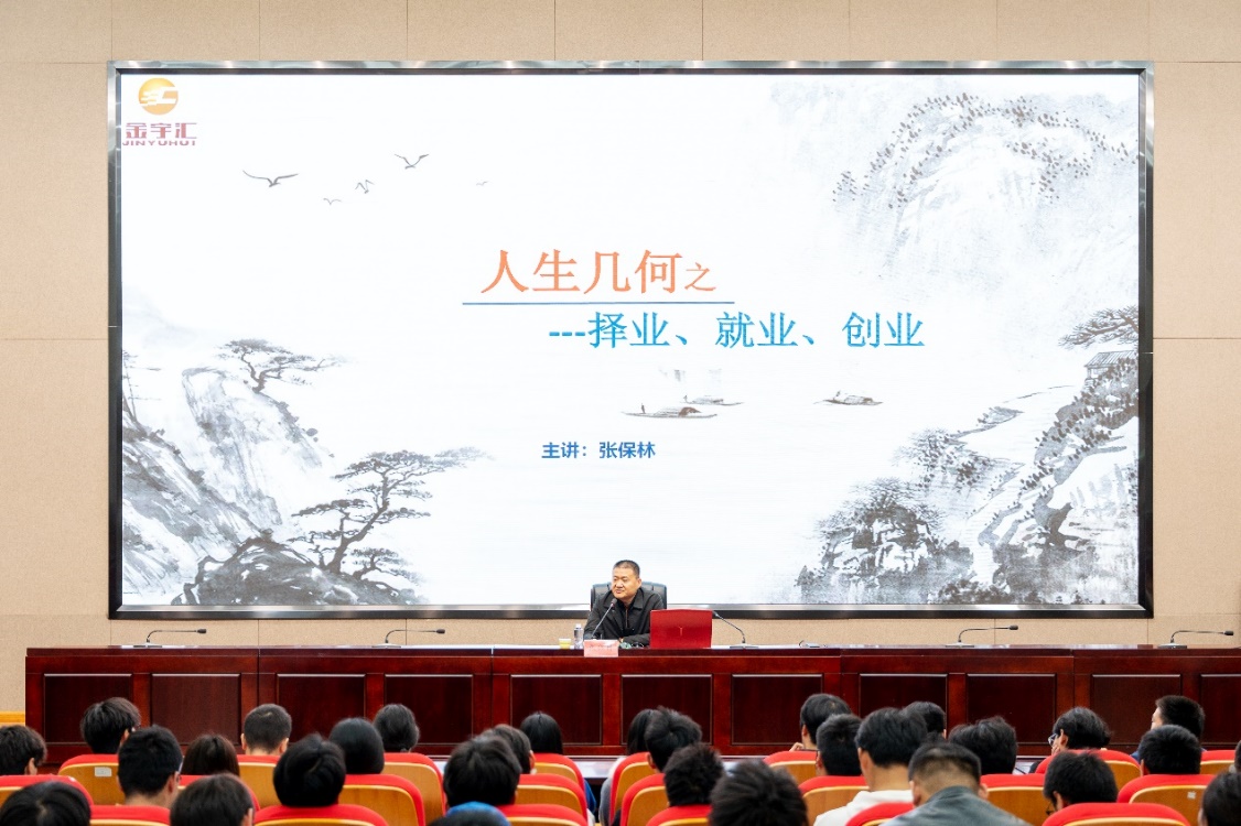 张宝林作题为《人生几何之—择业、就业、创业》报告,以“人生几何”为核心,从择业、就业、创业三个维度深刻剖析,阐释了择业中体验“不可替代”的价值与“管理不可或缺”的意义,指出就业与创业需持续积累、发掘并创造价值,树立远大理想、规划未来。他寄语大家面对挑战与压力永葆热忱、不断超越自我,通过持续提升认知,构筑丰盈幸福的人生。
