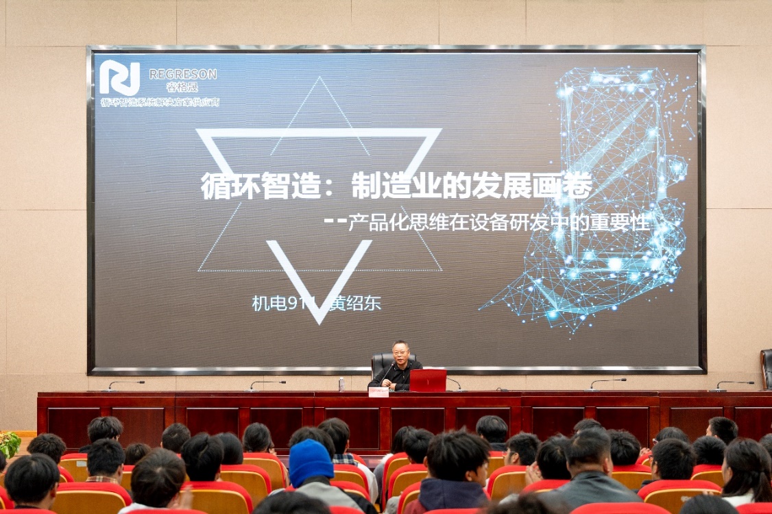 黄绍东校友分享了《循环制造:制造业的发展画卷—产品化思维在设备研发中的重要性》。他以工业革命的演进历程为脉络,引出循环制造发展前景;详细介绍了CNC废切削液原位绿色低碳智慧回收利用技术体系及产品核心技术工艺、切削液净化技术、无人化废屑处理装备和AI废屑回收机器人技术等关键成果。
